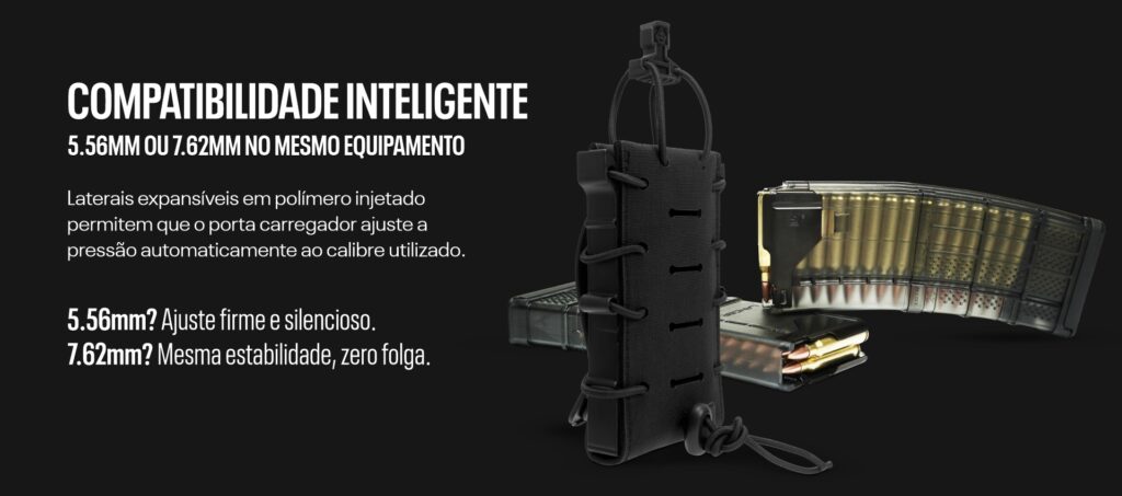 Absolutamente seguro. Diferente de porta-carregadores genéricos, o Fast Mag da Warfare combina hastes laterais de polímero com elásticos tensores de alta memória. O diferencial é que a pressão é totalmente ajustável pelo operador. Você pode apertar o sistema para garantir retenção total em saltos de paraquedas ou atividades de alta intensidade, ou afrouxar para um saque recorde em competições de tiro prático.