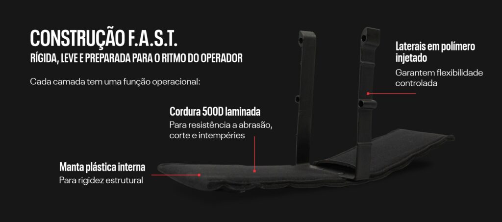 • Corpo em Laminado de Cordura 500D: Resistência máxima com perfil extrafino (low profile).