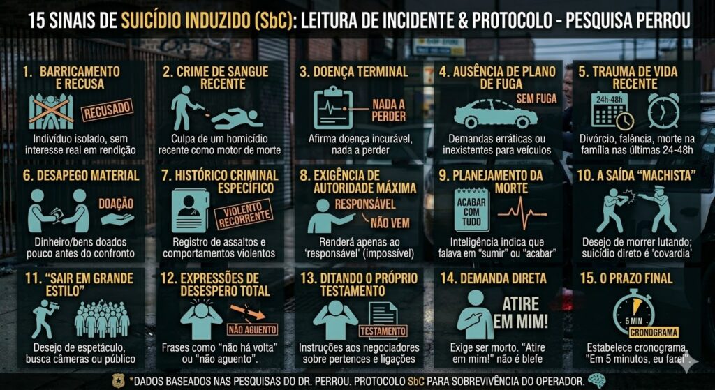 Este fenômeno, conhecido mundialmente como Suicide By Cop (SbC) — ou Suicídio por Intervenção Policial —, é uma das situações mais perigosas e psicologicamente devastadoras que um operador de segurança pública pode enfrentar.