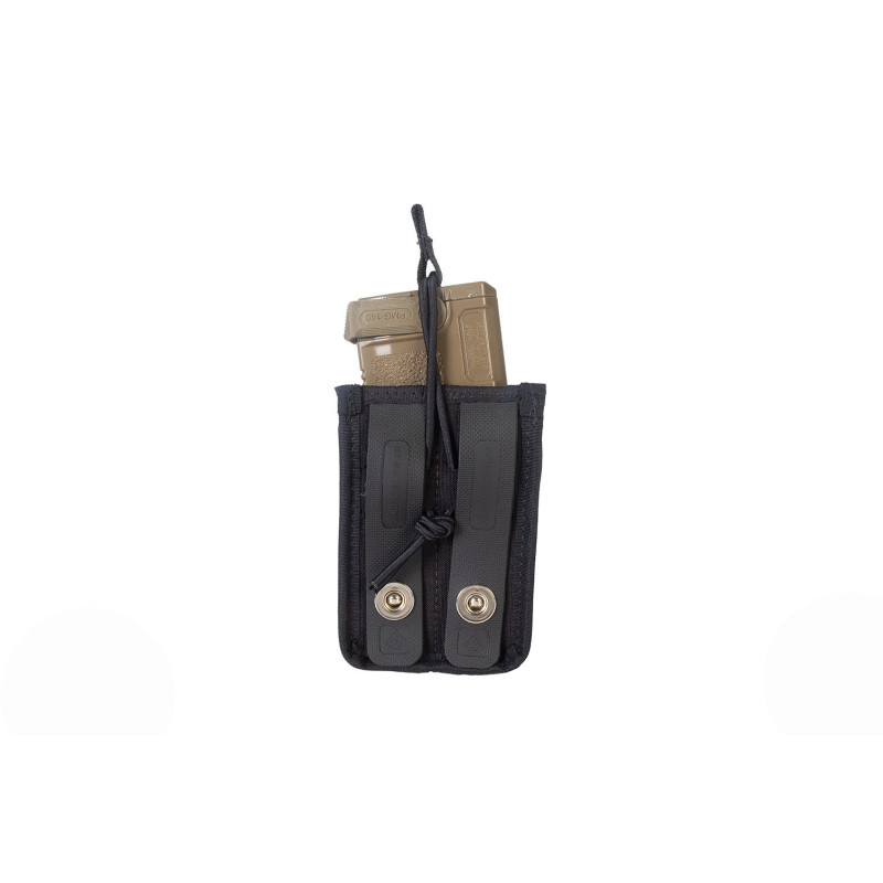 O Porta Carregador Modular 2X556 acomoda até 2 carregadores calibre 5.56mm ou 1 de 7.62mm, com sistema MOLLE em laser cut, fitas de fixação em polímero e aba removível para máxima segurança.