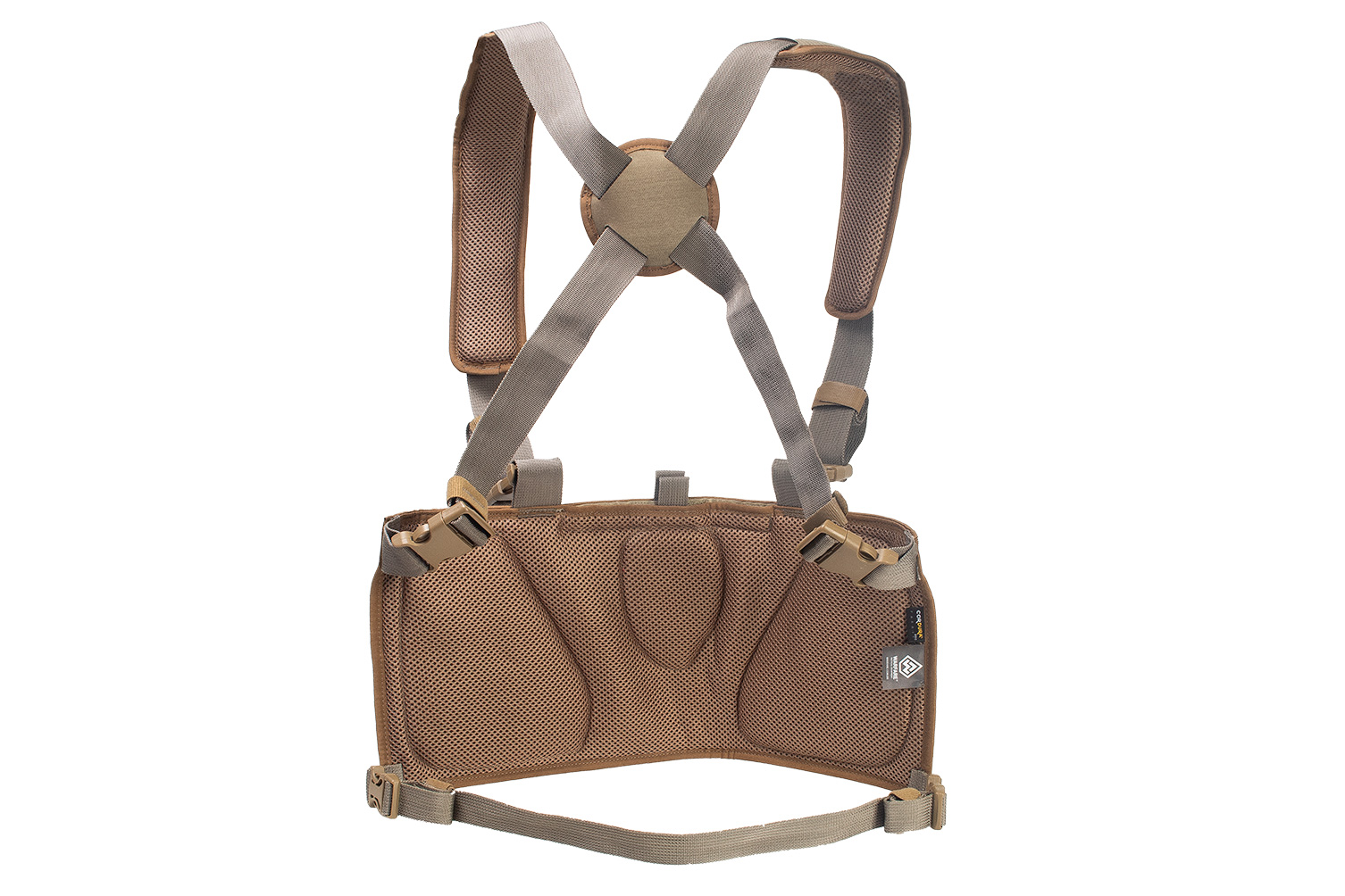 A estrutura mantém estabilidade sem tirar a mobilidade, característica-chave de um chest rig de perfil baixo.