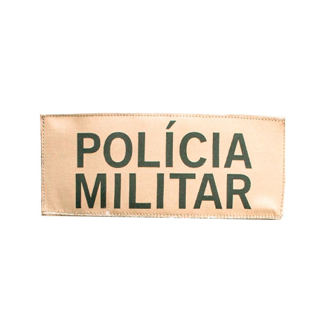 Patch para uso em coletes taticos medindo 25cm de largura por 10cm de altura.
