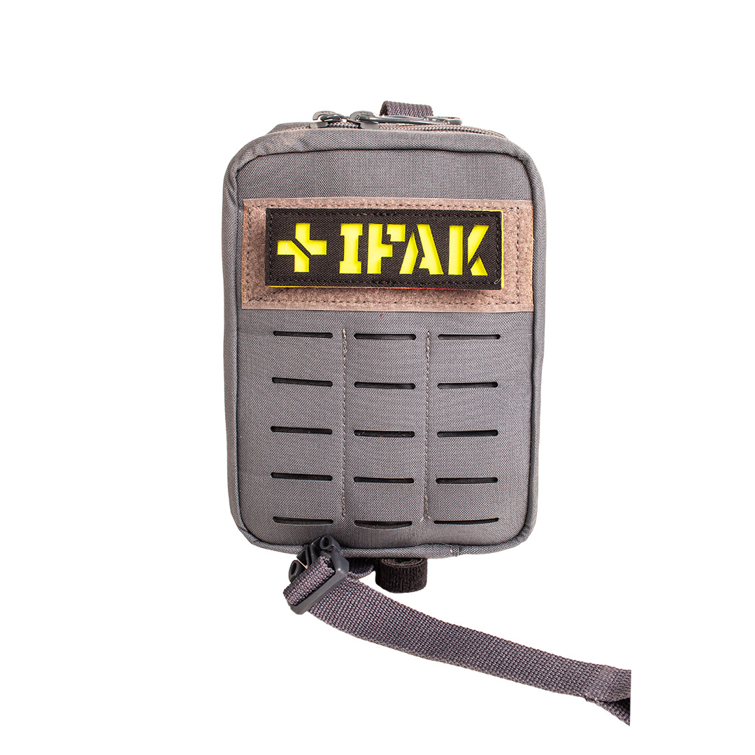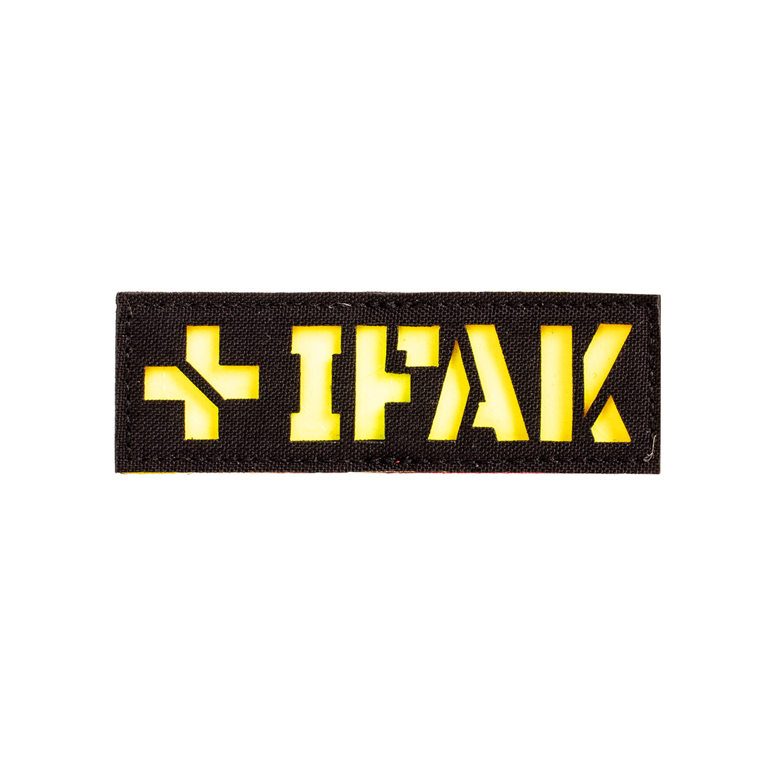 • Identificação Instantânea: As letras “IFAK” e a Cruz Médica (Cruz de Socorro) são vazadas em um laminado de cordura 500D preto de alta definição, revelando um fundo amarelo reflexivo.