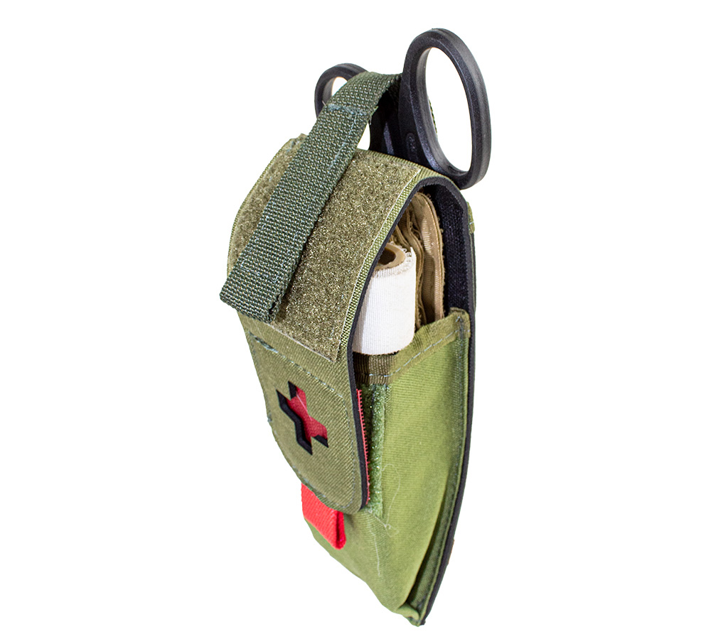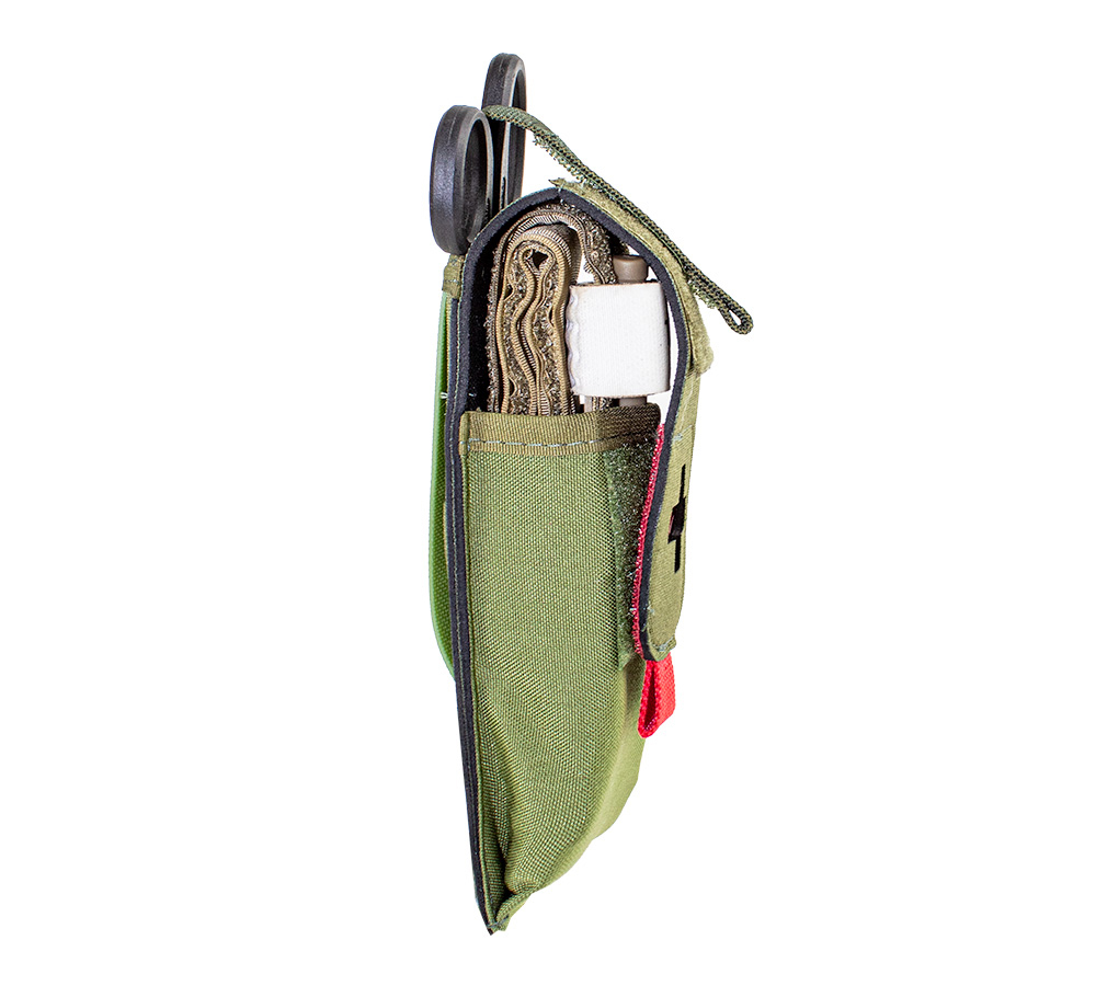 Construído em laminado de Cordura 500D, este porta torniquete oferece proteção, acesso rápido e organização essencial para protocolos de APH tático. Possui tampa com símbolo médico em laser cut, fita de abertura destacada e bolso traseiro dedicado para tesoura ponta romba. Fixação por MOLLE com fitas injetadas e botões em latão.