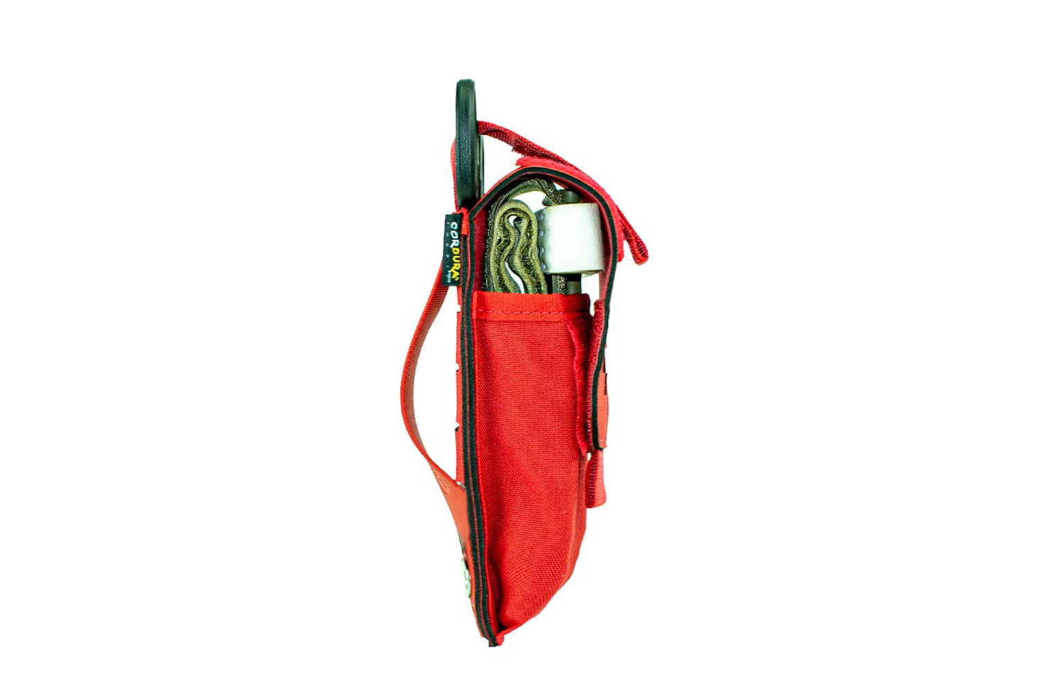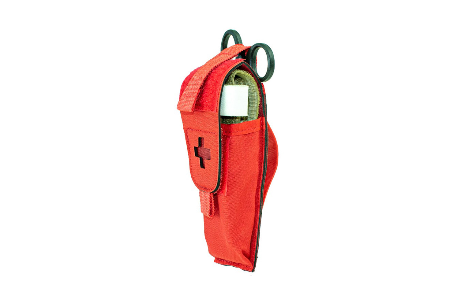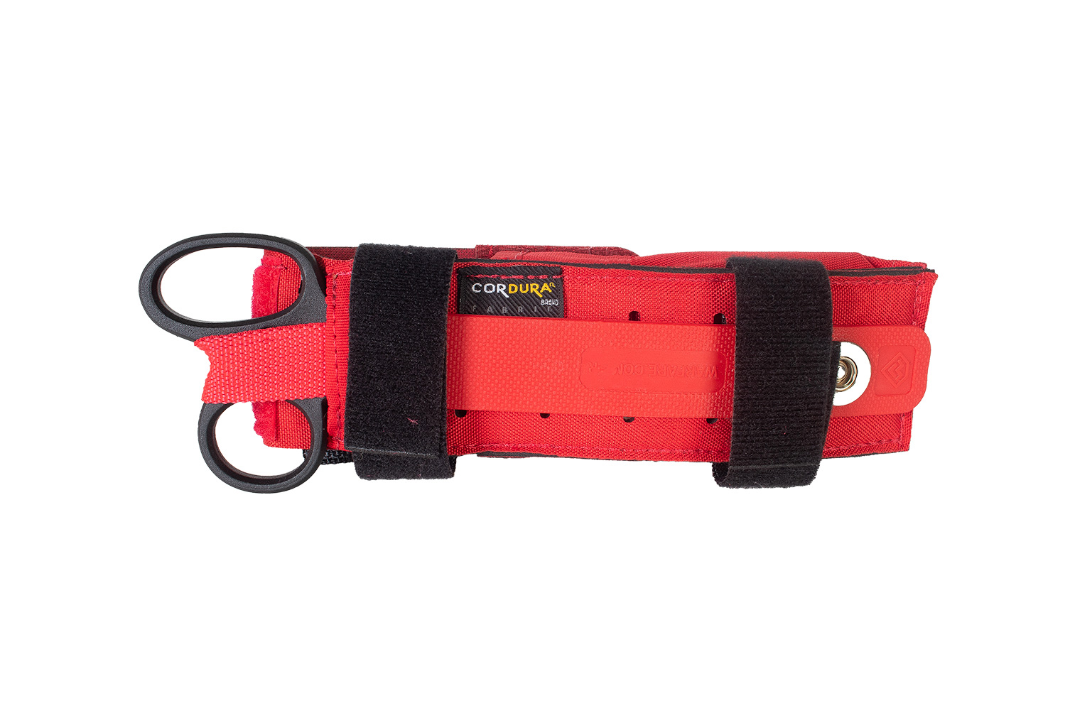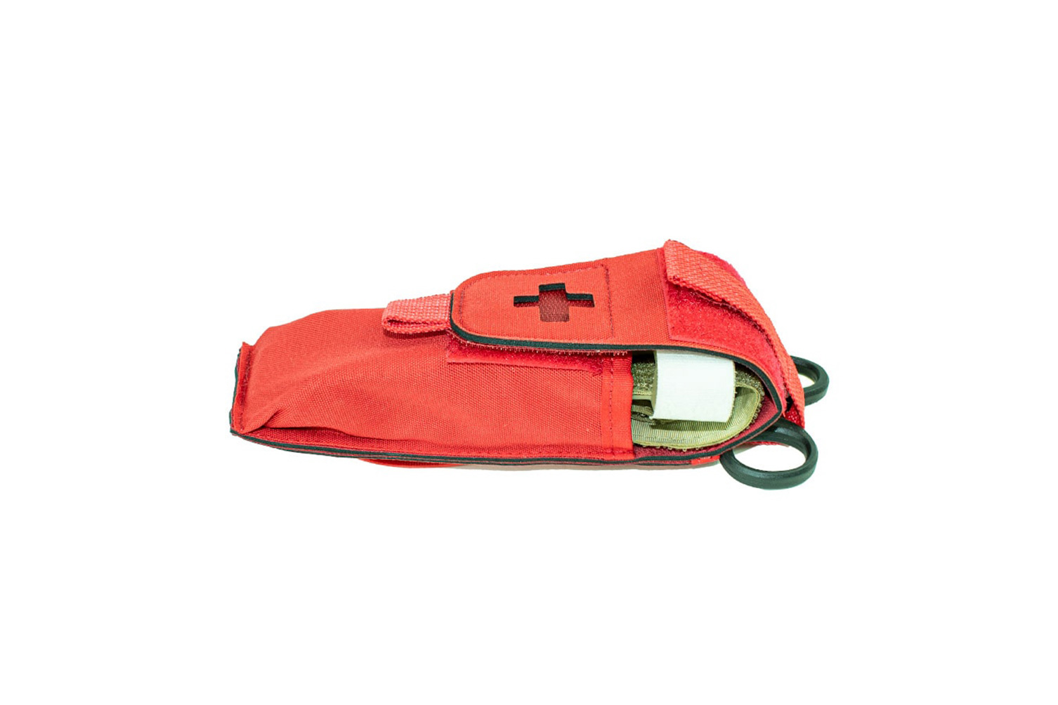Construído em laminado de Cordura 500D, este porta torniquete oferece proteção, acesso rápido e organização essencial para protocolos de APH tático. Possui tampa com símbolo médico em laser cut, fita de abertura destacada e bolso traseiro dedicado para tesoura ponta romba. Fixação por MOLLE com fitas injetadas e botões em latão.